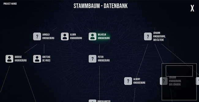 „Abenteuer Hanse“ ist ein von einer fiktiven Geschichte getriebenes Augmented Reality-Spiel, welches durch die Ausstellung des Europäischen Hansemuseums Lübeck führt. Die User:innen erleben hierbei im Single- und Multiplayer eine Zeitreise durch die Geschichte der Hanse, müssen Rätsel lösen und den jungen Alex finden, der ebenfalls durch die Zeit gereist ist – aber den User:innen immer einen Schritt voraus zu sein scheint. Mit einem sogenannten Zeitfenster, einer experimentellen Zeitreisetechnologie ausgestattet, finden sie den Grund für Alex‘ Zeitreise heraus und helfen ihm dabei, eine Verschwörung gegen seine Familie aufzudecken. Die Spieler:innen müssen mit einem mobilen Endgerät in der Ausstellung Rätsel lösen, Dialoge meistern und versteckte Inhalte finden, was teils durch Tracking von AR-Markern, teils durch die Interaktion mit Beacons passiert. Dadurch werden auf dem Bildschirm des Endgeräts Inhalte freigeschaltet, die durch die packende Geschichte der Hanse führen.